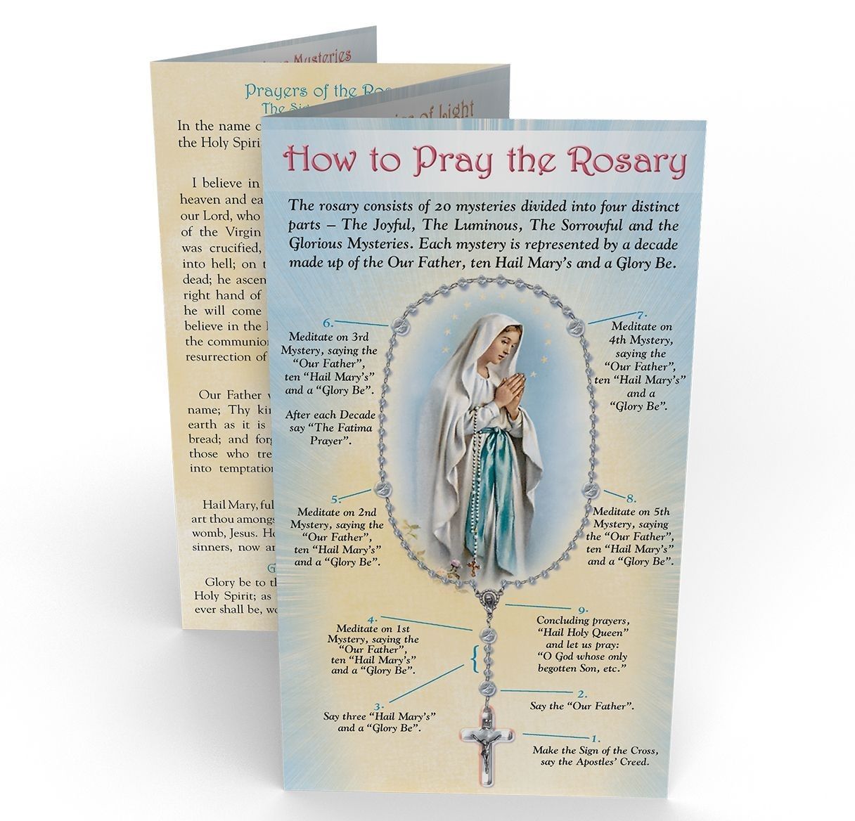 Pamphlets are concise and portable, allowing them to be used during personal prayer, group recitations, or church services, while instruction books may offer deeper reflections, historical background, and spiritual insights to enrich the experience. Together, they support both learning and devotion by providing clear guidance and encouraging a more focused, meaningful prayer life.
